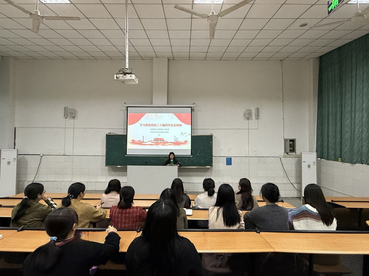10月29日下午,学院第二党支部开展“学习贯彻党的二十届四中全会精神”主题党日活动。本次活动由支部副书记赵丹主持,全体教师参加。