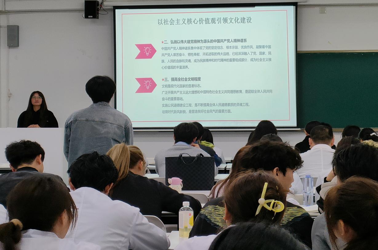 学生以小组为单位,选择不同题目,采用不同方式进行课堂展示。有的小组以“文化繁荣发展的重要意义”为题,以“黑神话·悟空”“唐宫夜宴”等案例为切入点,采用趣味问答形式,探讨了文化繁荣对实现中华民族伟大复兴的重要性。有的小组以“社会主义核心价值观引领文化建设”为题,采用“短视频+故事讲解”方式,从国家、社会、公民三个层面讲述了社会主义核心价值观的主要内容。有的小组以“铸就社会主义文化新辉煌”为题,从传承发展中华优秀传统文化、繁荣发展文化事业和文化产业、不断提升国家文化软实力和中华文化影响力等方面展开讨论,并结合具体数据和典型案例分析当前社会主义文化发展的现状和挑战。