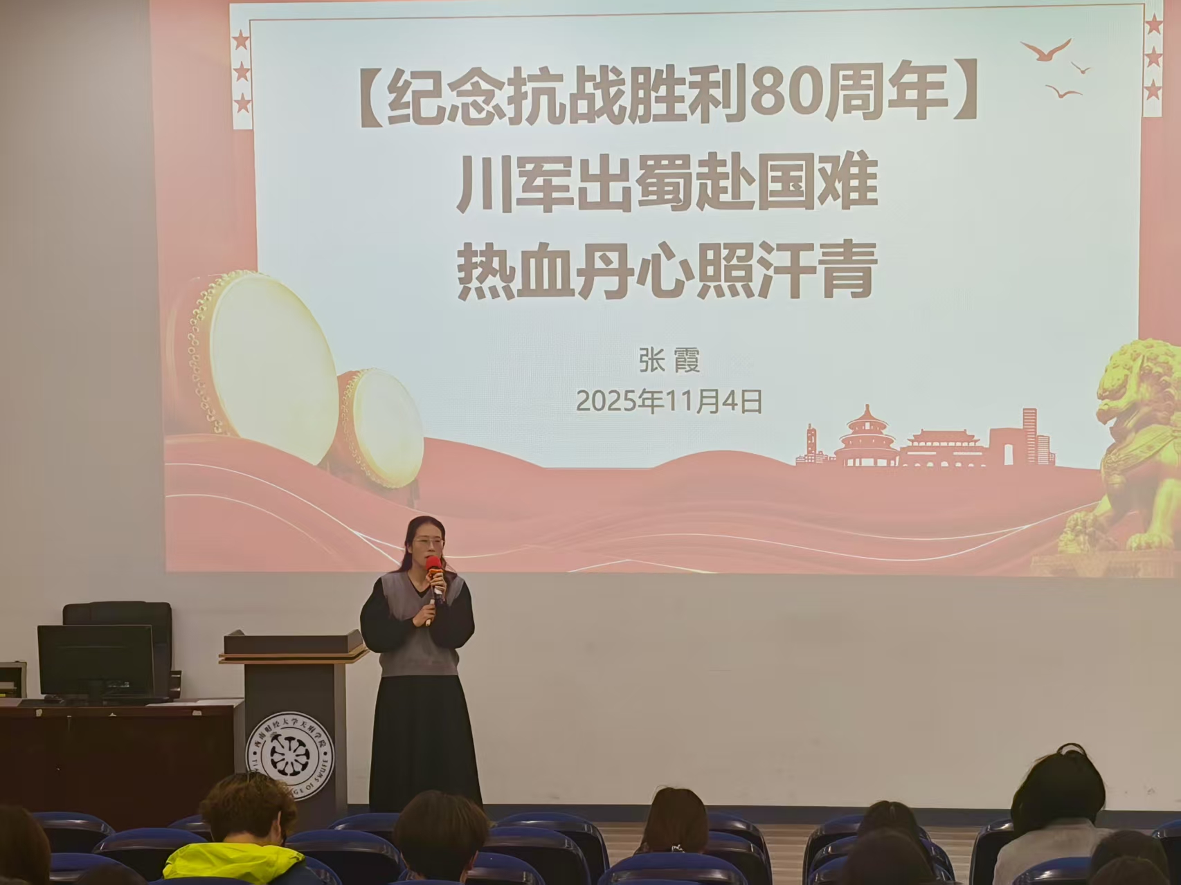 学院举办“纪念中国人民抗日战争暨世界反法西斯战争胜利八十周年”主题宣讲活动11月4日,由马克思主义学院主办、校党建服务中心协办的“纪念中国人民抗日战争暨世界反法西斯战争胜利八十周年”主题宣讲在成都校区(东区)举行。本次活动由学院教师张霞主讲,近百名学生参加学习。宣讲现场张霞以“川军出蜀赴国难 热血丹心照汗青”为题,从历史背景、精...