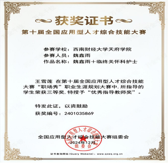 第十届全国应用型人才综合技能大赛“职场秀”职业生涯规划大赛三等奖