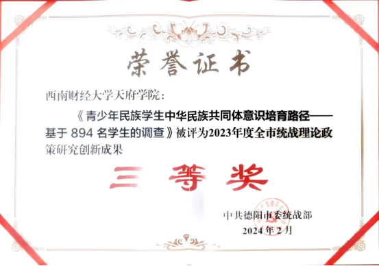2023年德阳市统战理论政策研究创新成果三等奖